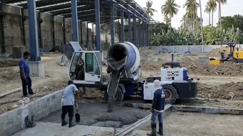 魯樽1.6方自動(dòng)上料攪拌車(chē)在東南亞地坪施工中