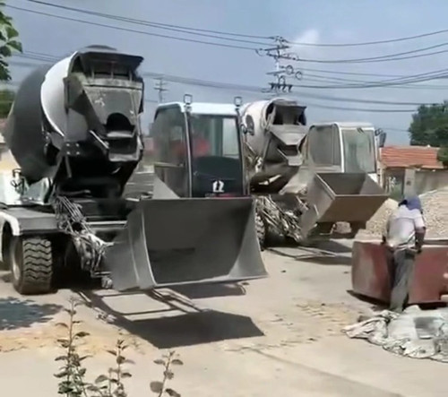 2臺(tái)魯樽2.6方自動(dòng)上料攪拌車(chē)齊力打地面